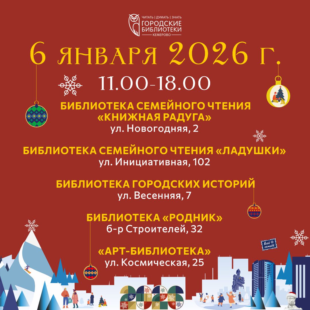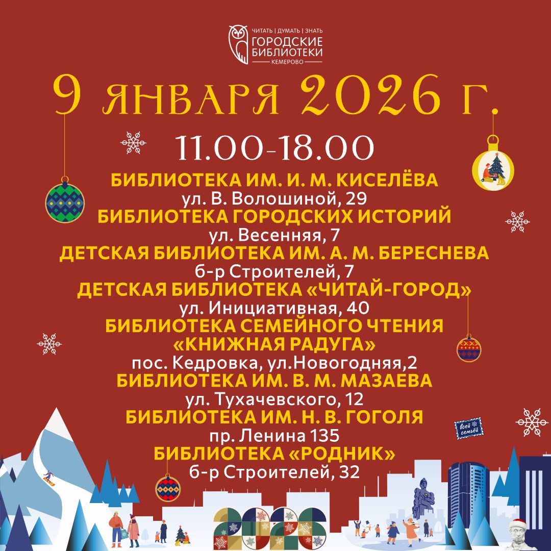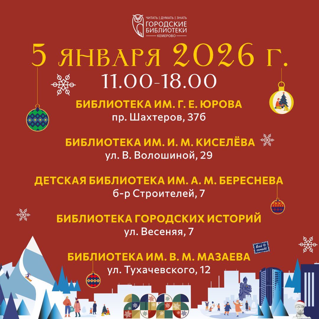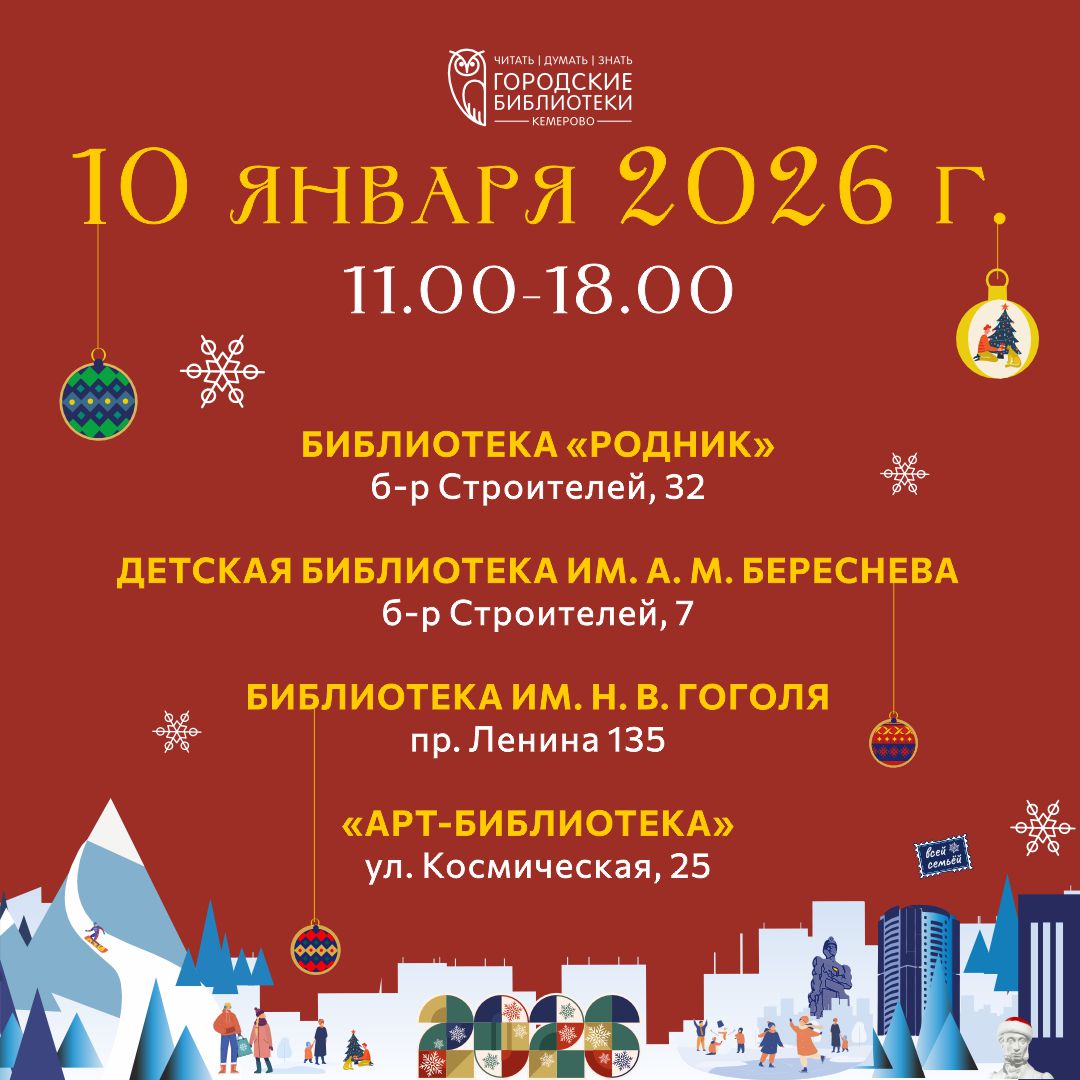 05.01.2026 г. 11.00-18.00. - Детская библиотека им. А. М. Береснева (б-р Строителей, 7).