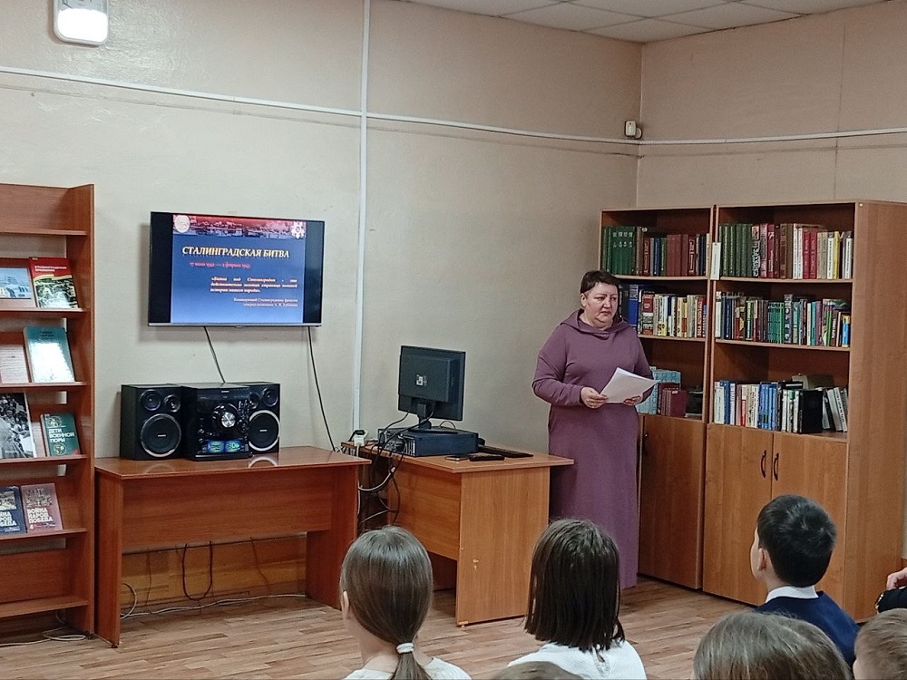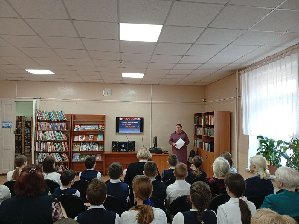 Урок был посвящен одной из важнейших дат в истории Отечества – Дню разгрома советскими войсками немецко-фашистских войск в Сталинградской битве. Школьникам рассказали, что эта величайшая битва Великой Отечественной войны стала коренным переломом не только на советско-германском фронте, но и в ходе всей Второй мировой войны.