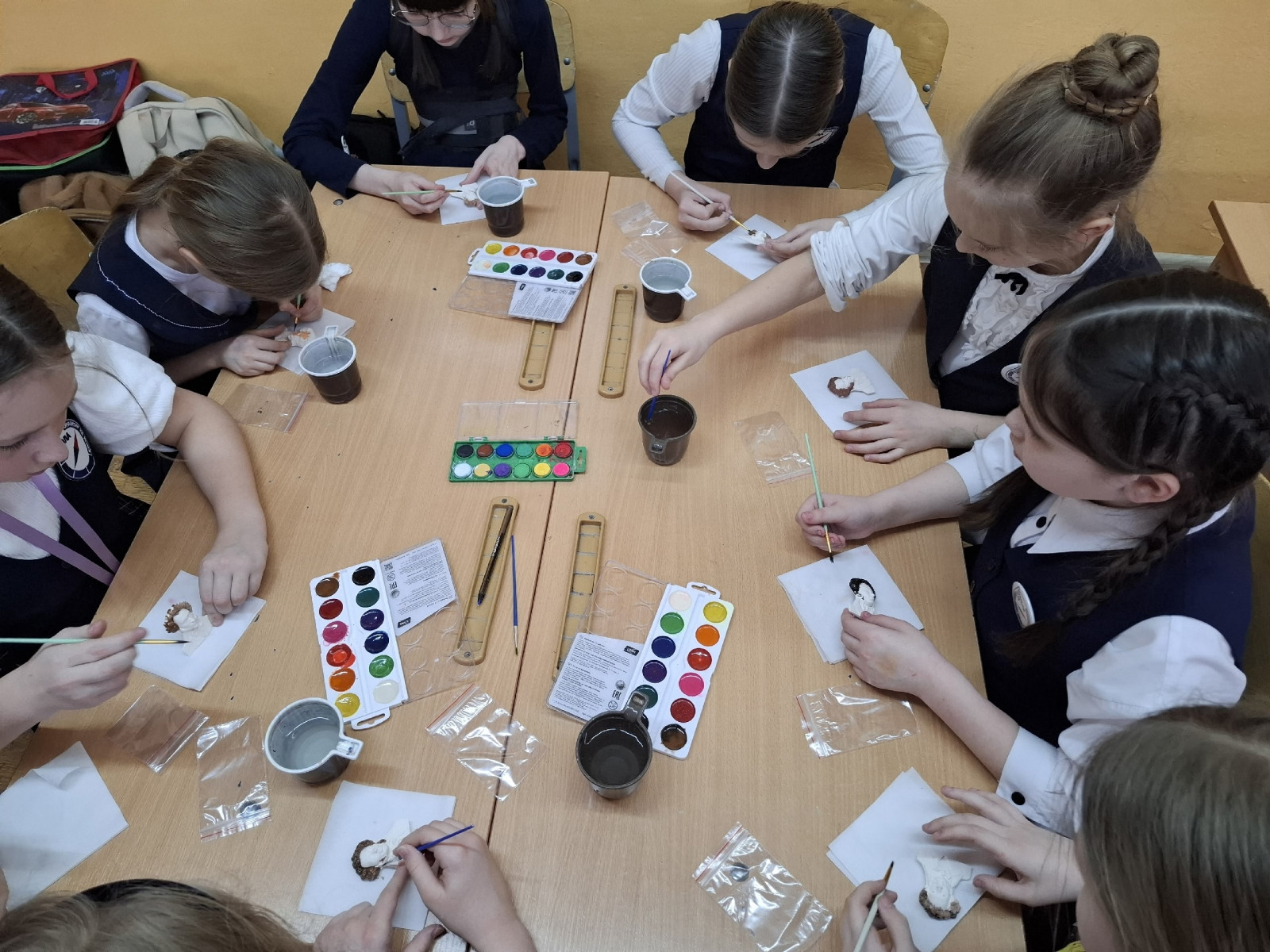 Завершилась программа творческим мастер-классом, в ходе которого каждый ученик создал себе на память уникальный сувенир – расписал гипсовый магнит с портретом А.С. Пушкина.
