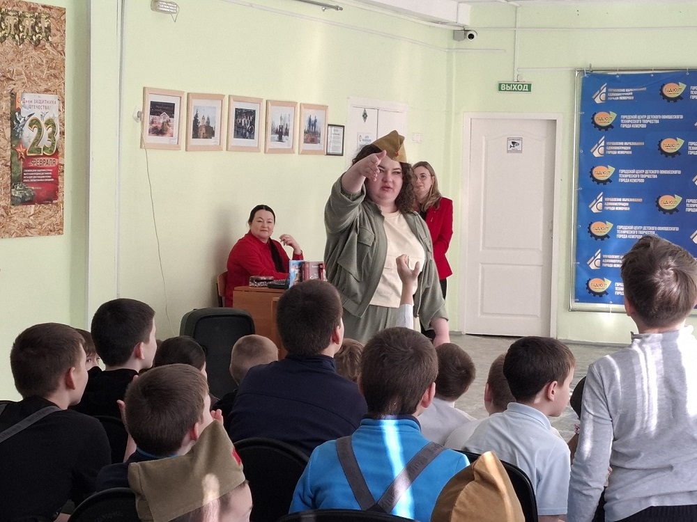 Встреча началась с познавательной части: сотрудники библиотеки рассказали ребятам об истории возникновения праздника 23 февраля и представили книжную выставку, посвященную защитникам Родины — от былинных героев до современников.