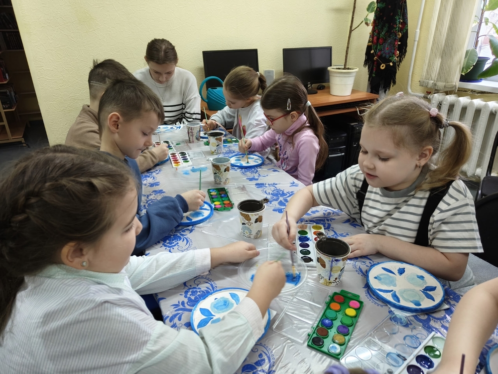 В библиотеке «Книгоград» (бр. Строителей, 42б) для первоклассников МБОУ «Гимназия № 25» устроили «Масленичный разгуляй». Ребята узнали о значении каждого дня масленичной недели и народных приметах, расписали гипсовые тарелочки в стиле гжель.