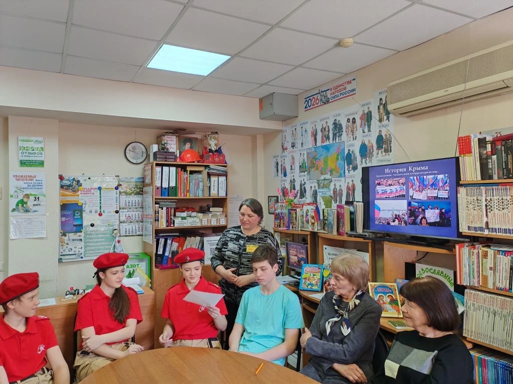 18 марта 2026 года накануне 12-й годовщины присоединения Крыма к России в детской библиотеке «Колокольчик» (ул. Щегловская, 3) состоялся патриотический час «Крымская весна: события, факты, люди».